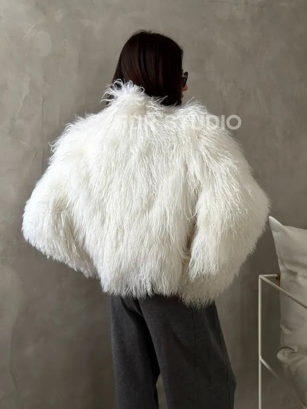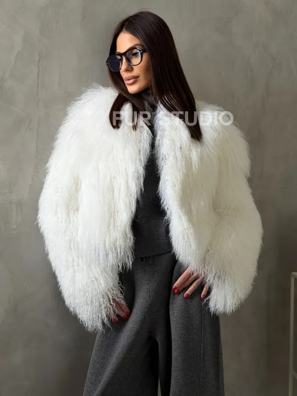 Белая кроп-шуба из меха ламы доступна для покупки в нашем шоуруме Furs Studio в . У нас так же есть доставка во все города России. Добавьте немного роскоши в свой гардероб с этой шубой, которая будет служить вам многие годы.