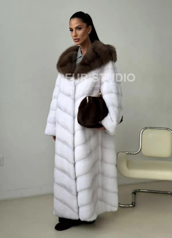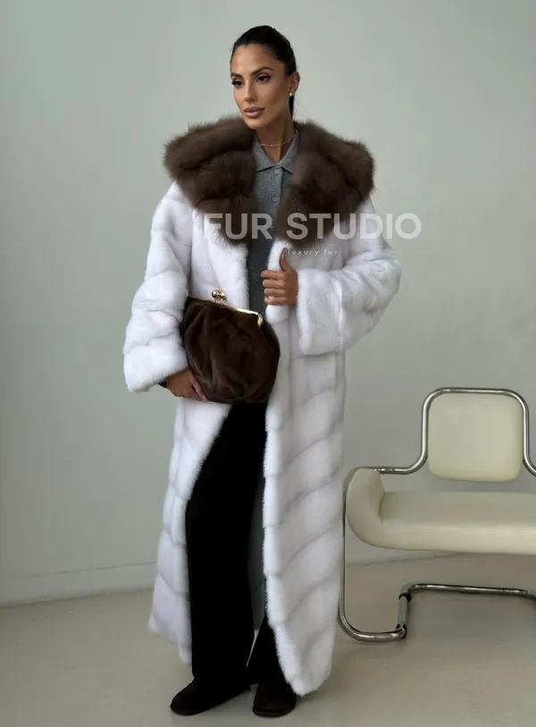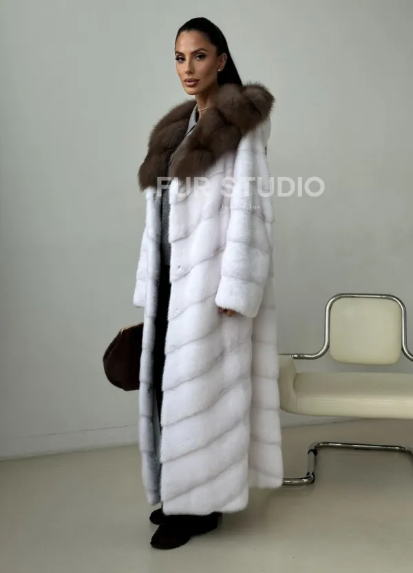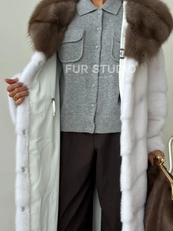 Белая норковая шуба с куницей капюшон доступна для покупки в нашем шоуруме Furs Studio в . У нас так же есть доставка во все города России. Добавьте немного роскоши в свой гардероб с этой шубой, которая будет служить вам многие годы.