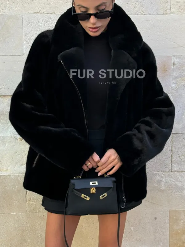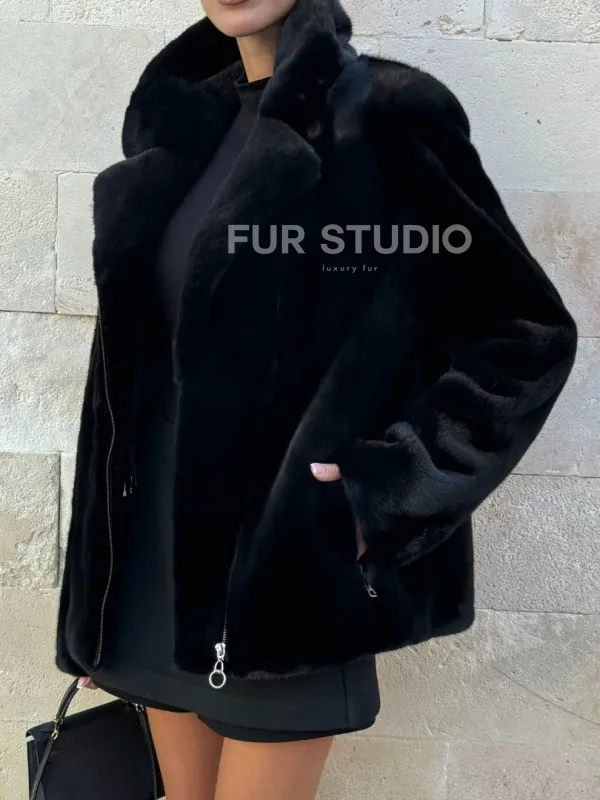 Черная косуха (куртка) из скандинавской норки 101071