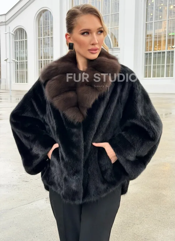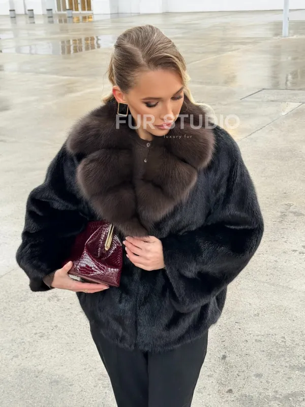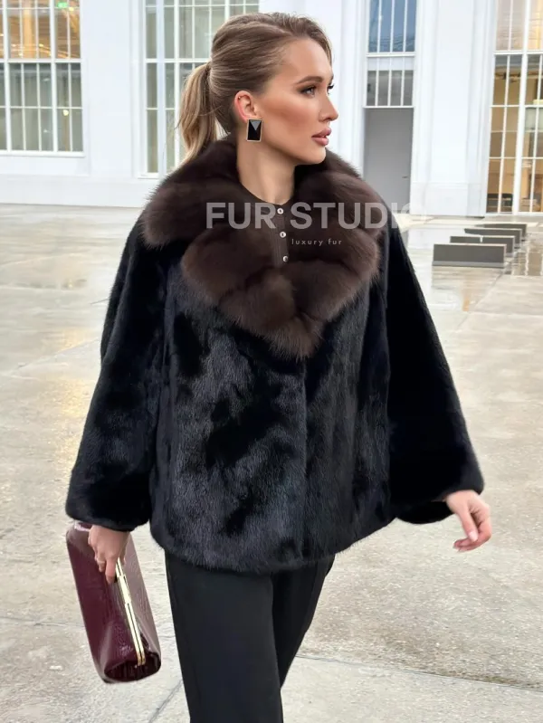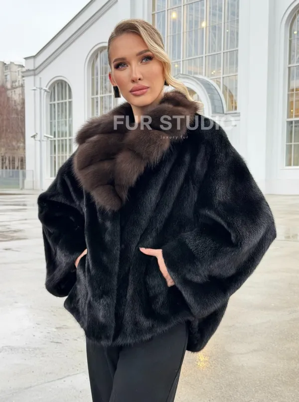 Черный норковый жакет с воротником куницы доступна для покупки в нашем шоуруме Furs Studio в . У нас так же есть доставка во все города России. Добавьте немного роскоши в свой гардероб с этой шубой, которая будет служить вам многие годы.