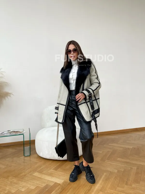 Дубленка на мехе тосканы в цвете Grey 100184