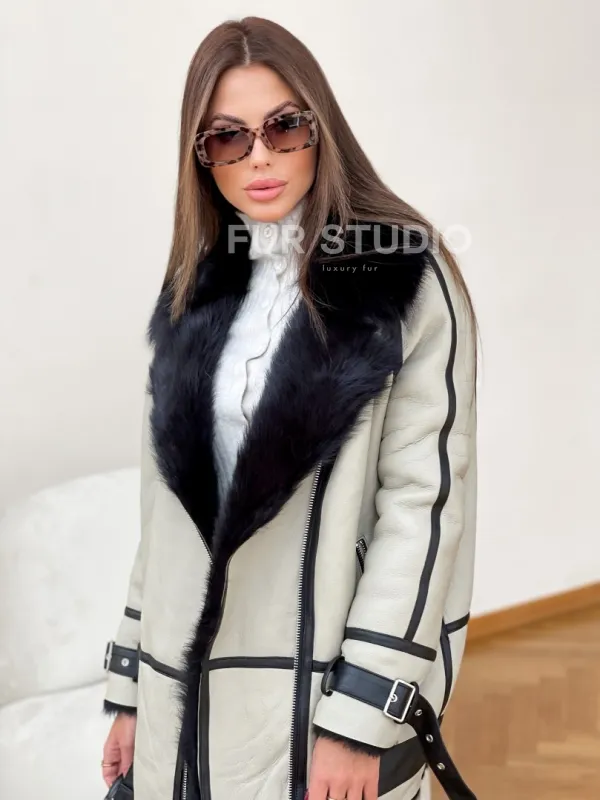 Оригинальный пояс, застегивающийся на бедрах, делает модель необычной. При этом ходить в дубленке очень удобно. Модель прекрасно подойдет под любой гардероб: от базового до вечернего туалета. Добавьте к образу статусную сумочку и идеальный look готов. Купить дубленку на мехе тосканы в цвете Grey могут женщины, которые любят выделяться из толпы и не быть, как все.