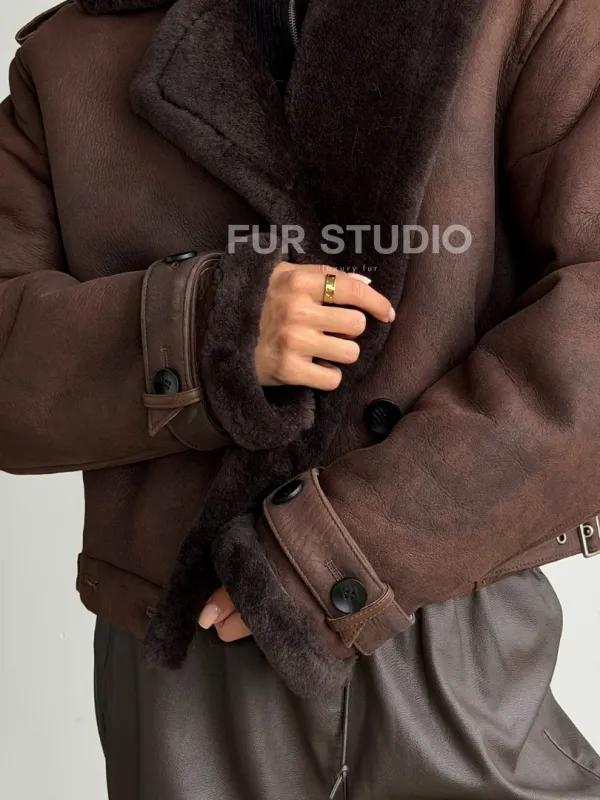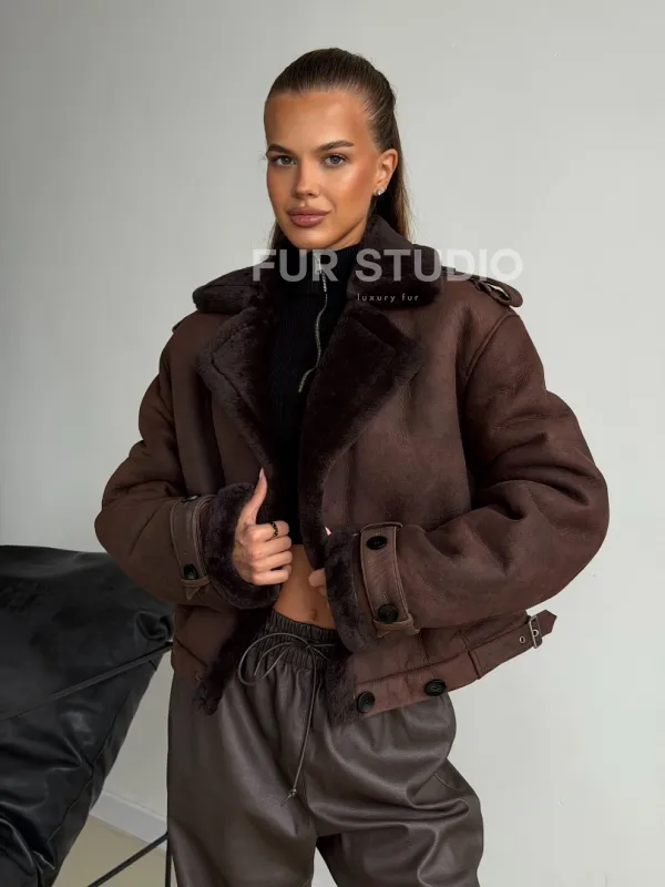 Двубортная короткая дубленка 102606