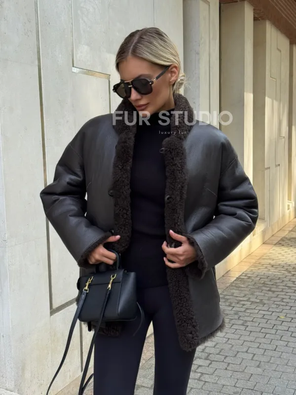 Двусторонняя коричневая дубленка из овчины 102256