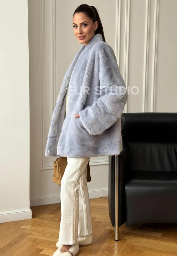 Голубая норковая шуба - жакет 102728