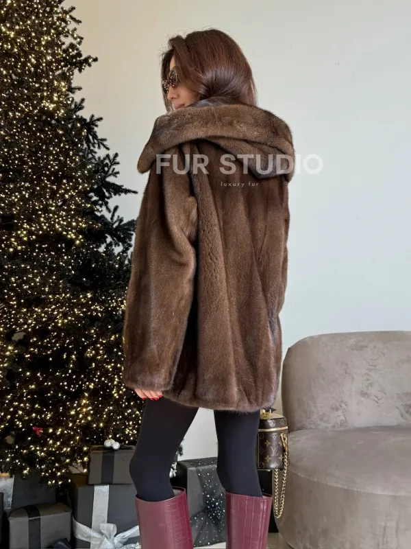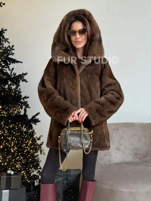 Норка автоледи с капюшоном, роспуск в цвете орех доступна для покупки в нашем шоуруме Furs Studio в . У нас так же есть доставка во все города России. Добавьте немного роскоши в свой гардероб с этой шубой, которая будет служить вам многие годы.