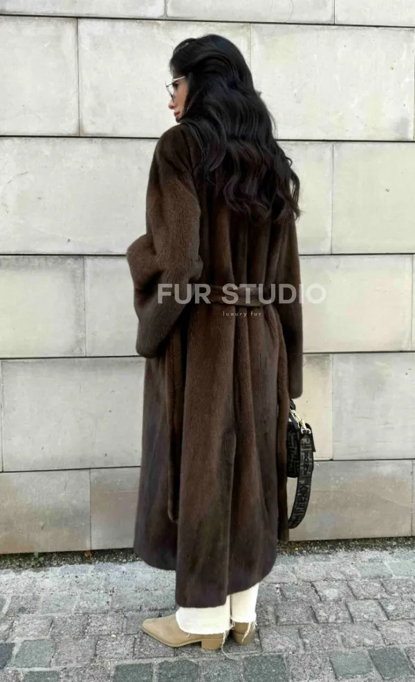 Норковая шуба, цельный мех PREMIUM COLLECTION VELVET - цвет соболь 101011