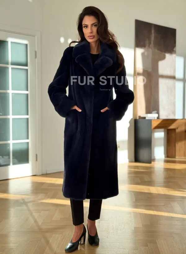 Норковая шуба темно-синего цвета доступна для покупки в нашем шоуруме Furs Studio в . У нас так же есть доставка во все города России. Добавьте немного роскоши в свой гардероб с этой шубой, которая будет служить вам многие годы.