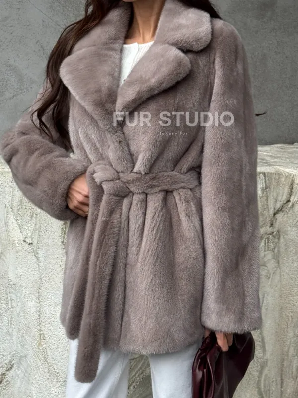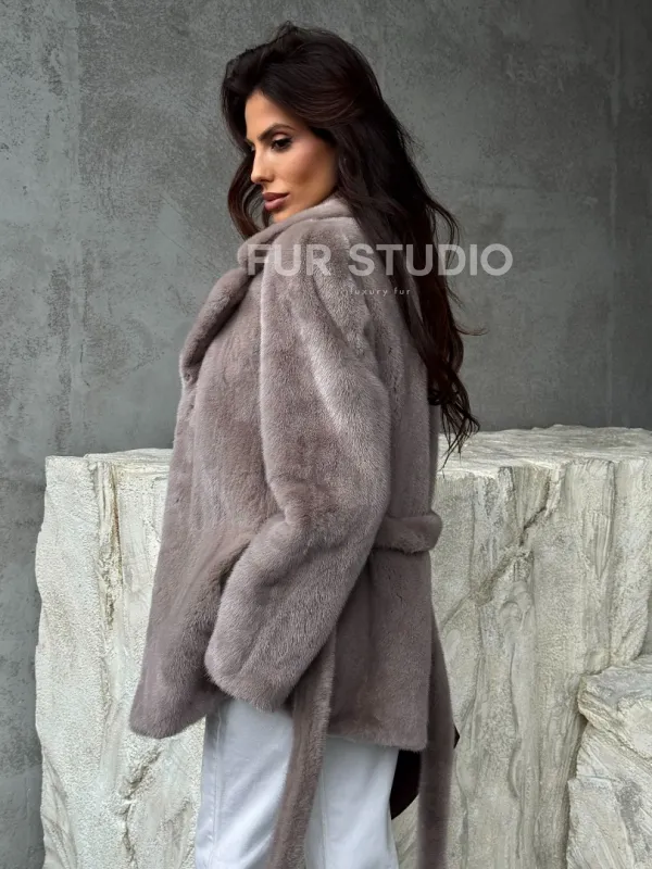 Норковая шуба - жакет с поясом 102488