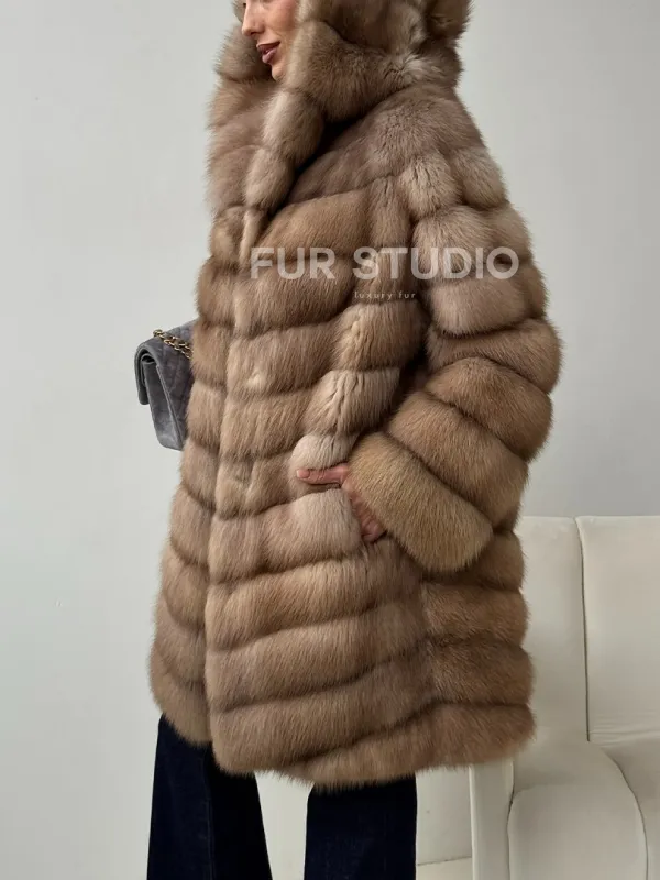 Шуба из куницы с капюшоном в цвете тор-тор доступна для покупки в нашем шоуруме Furs Studio в . У нас так же есть доставка во все города России. Добавьте немного роскоши в свой гардероб с этой шубой, которая будет служить вам многие годы.
