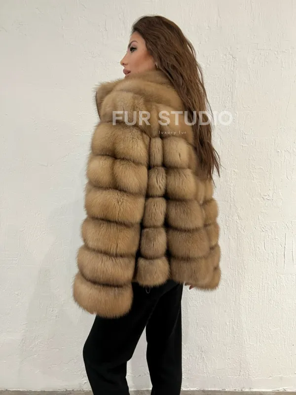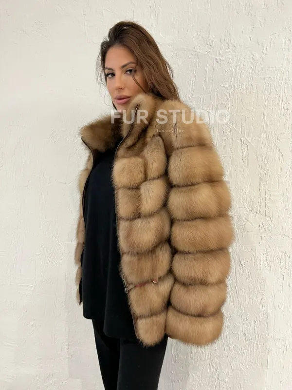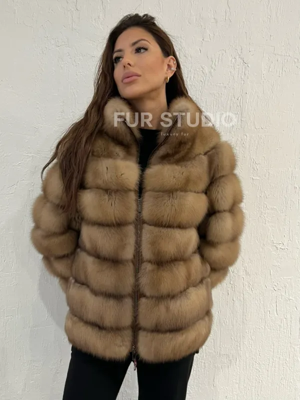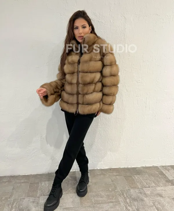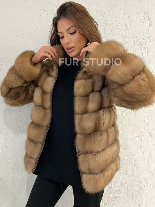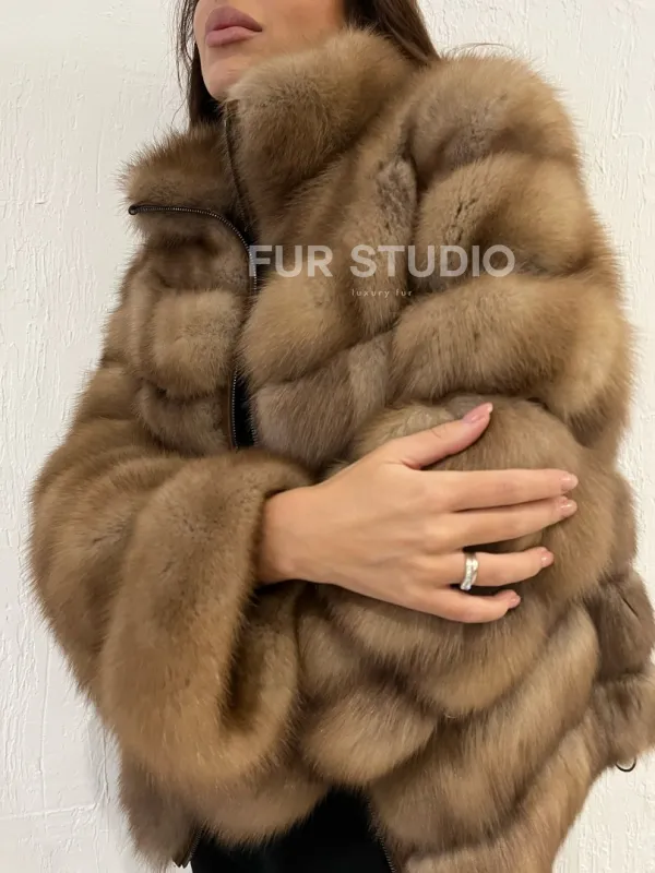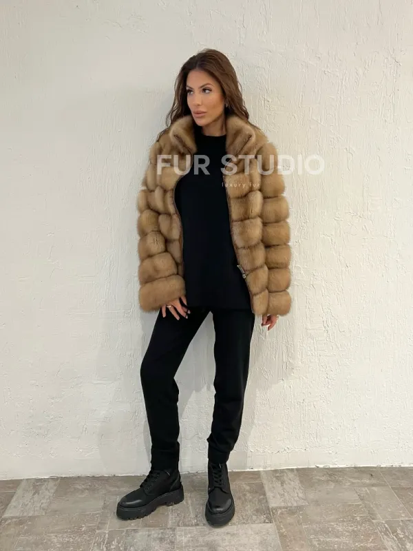 Шуба из меха куницы на молнии 100379