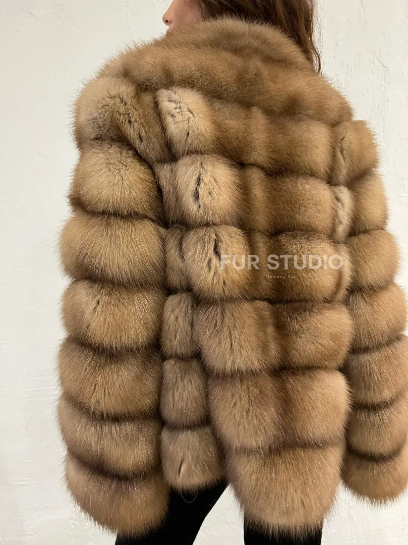 Мех данной шубы лесная куница, цвет натуральный. Предлагается в размерах от 42 до 44. Длина модели 55-60 см, что выгодно подчеркивает фигуру девушек. Эта модель идеально подойдет для девушек и женщин, предпочитающих роскошные натуральные меха.