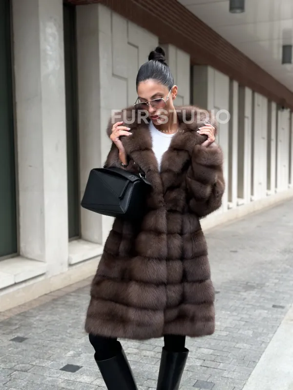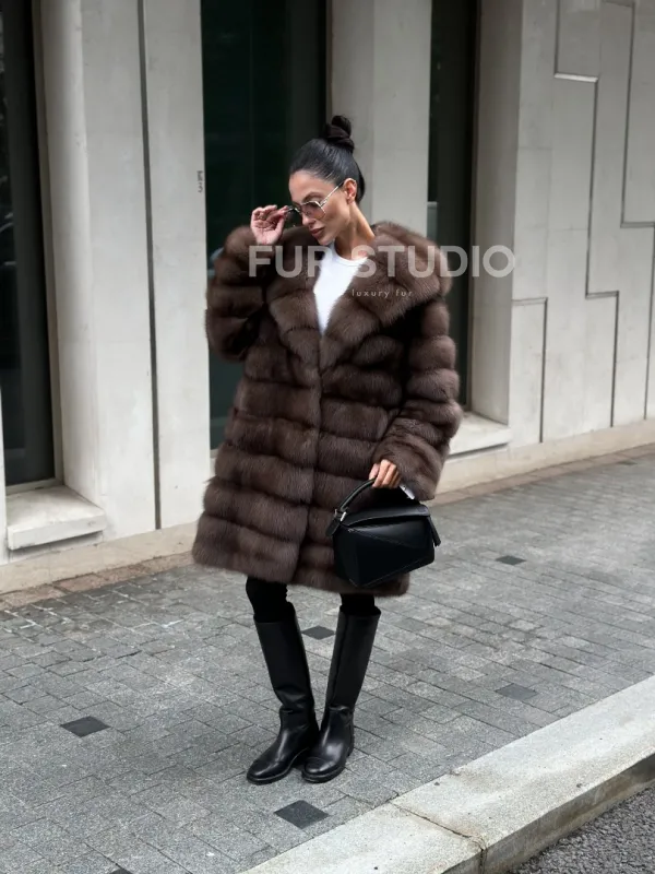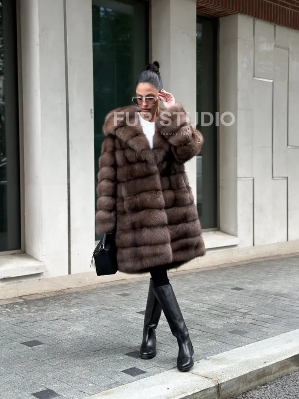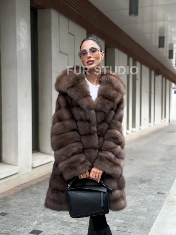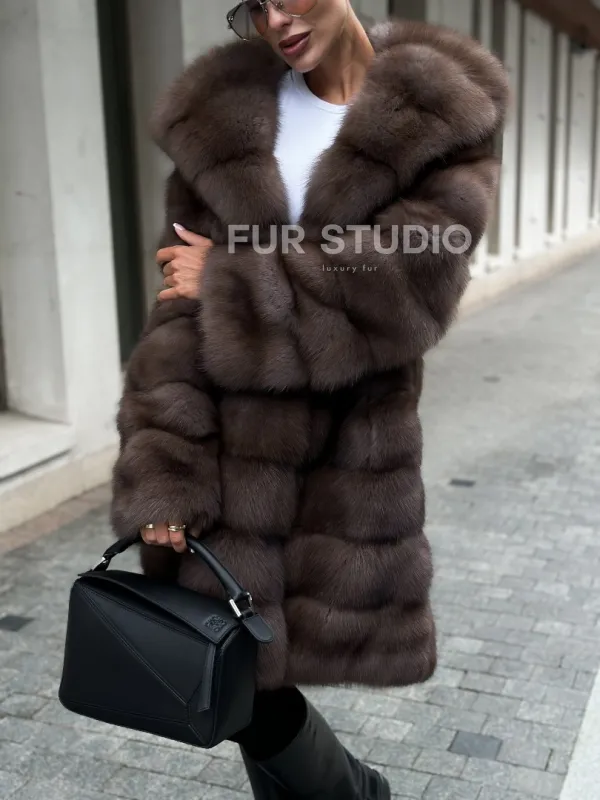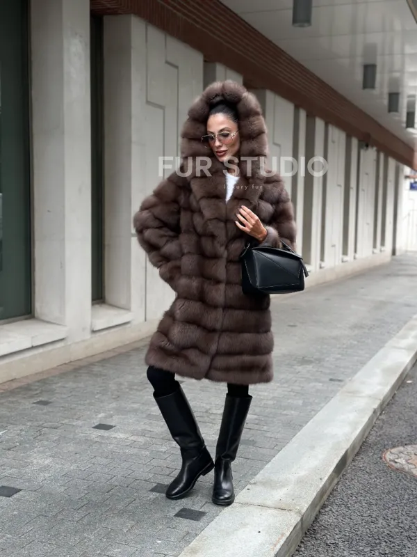 Шуба из меха куницы с капюшоном цвет трюфель доступна для покупки в нашем шоуруме Furs Studio в . У нас так же есть доставка во все города России. Добавьте немного роскоши в свой гардероб с этой шубой, которая будет служить вам многие годы.
