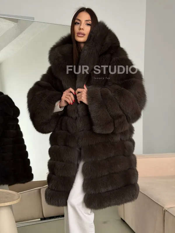 Шуба из песца с капюшоном доступна для покупки в нашем шоуруме Furs Studio в . У нас так же есть доставка во все города России. Добавьте немного роскоши в свой гардероб с этой шубой, которая будет служить вам многие годы.