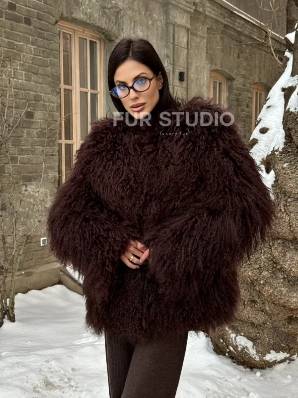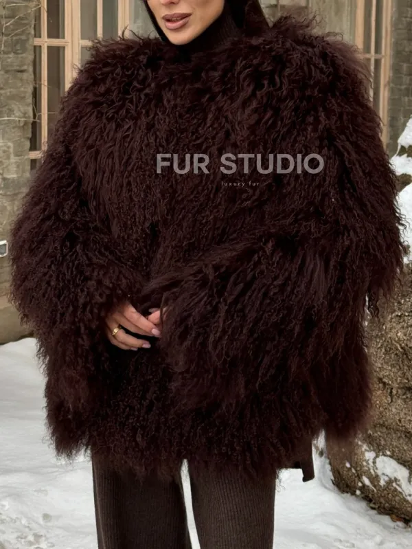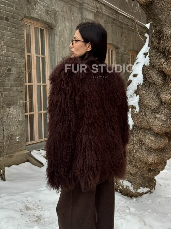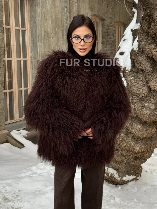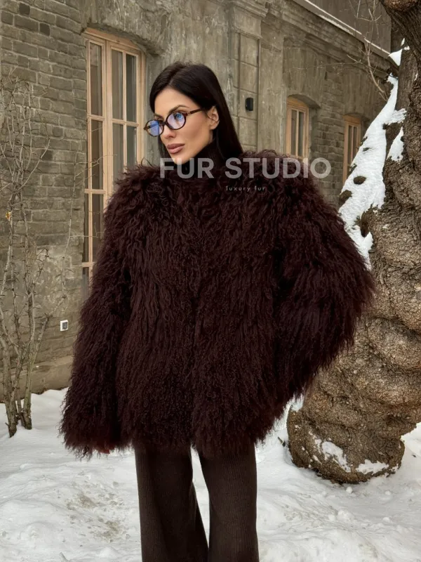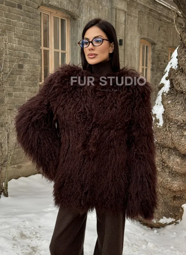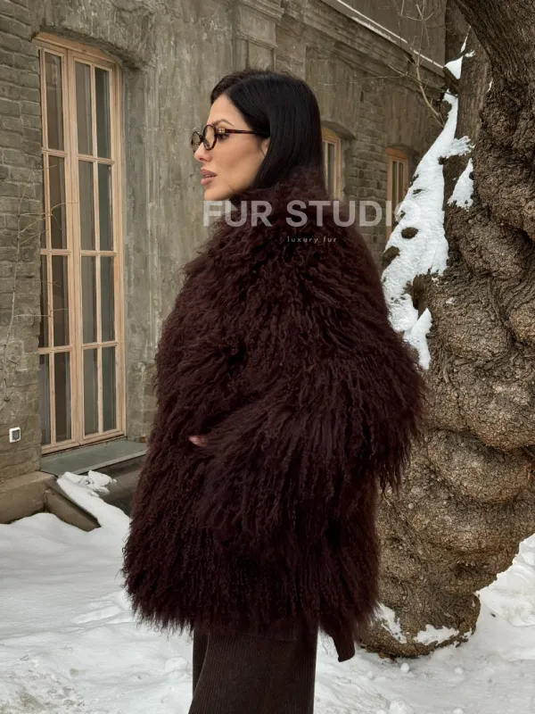 Шуба коричневая из меха ламы 101440