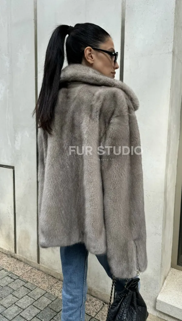Мех данной шубы аукционная норка, цвет серый. Предлагается в размерах от 42 до 50. Длина модели 65-70 см, что выгодно подчеркивает фигуру девушек. Эта модель идеально подойдет для девушек и женщин, предпочитающих роскошные натуральные меха.
