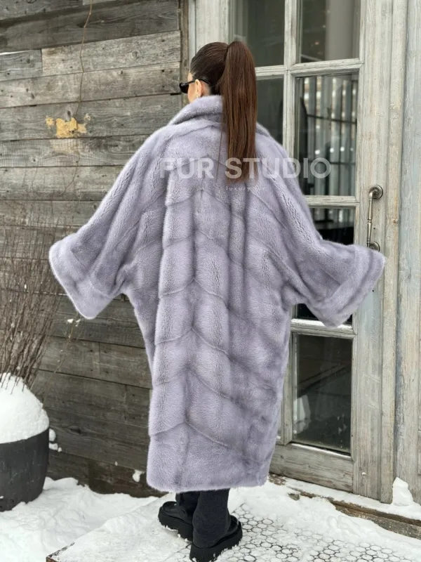 Шуба норковая в стиле Oversize - цвет серый сапфир 100860