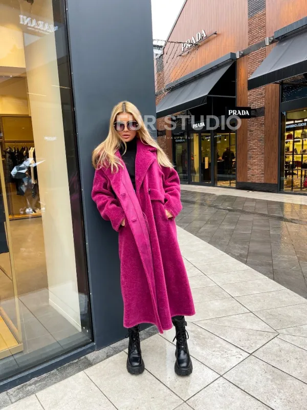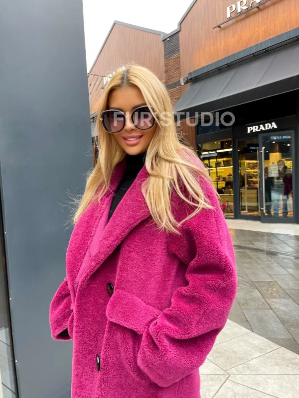 Современная шуба из натуральной шерсти отличная альтернатива для модниц, у которых бюджет ограничен. Яркий цвет подчеркивает индивидуальность владелицы и делает акцент на оттенке волос и глаз хозяйки. Длина позволяет носить короткие наряды, что очень актуально для любительниц мини в холодное время года. Широкие карманы позаботятся о тепле ручек. Прямой крой зрительно удлинит силуэт и скроет недостатки фигуры.