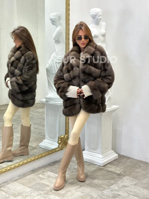 Стильный жакет из меха соболя доступна для покупки в нашем шоуруме Furs Studio в . У нас так же есть доставка во все города России. Добавьте немного роскоши в свой гардероб с этой шубой, которая будет служить вам многие годы.