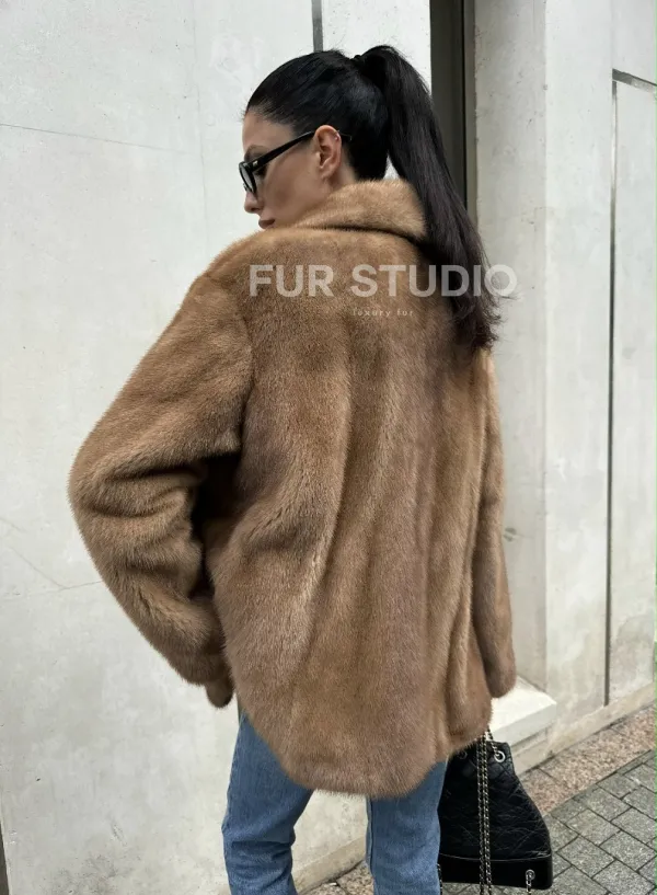 Женский норковый жакет в песочном цвете 100949