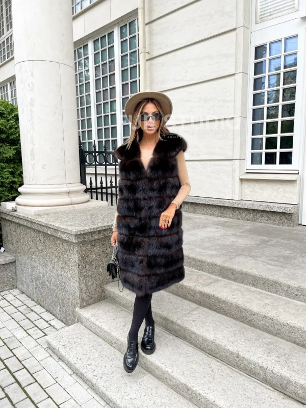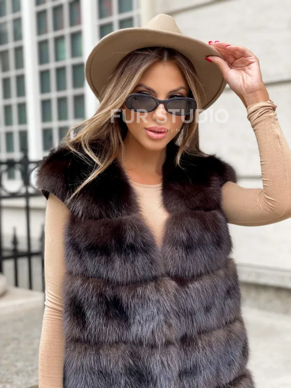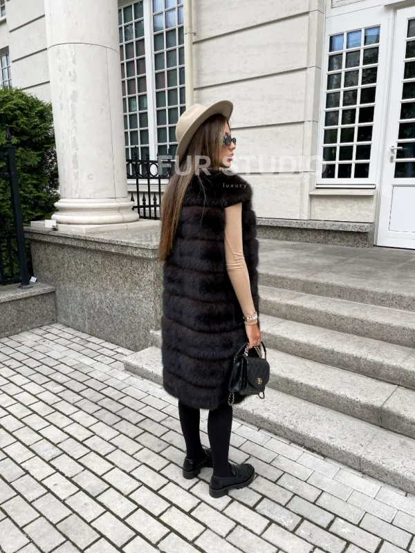 Жилет из куницы в цвете соболь 100285